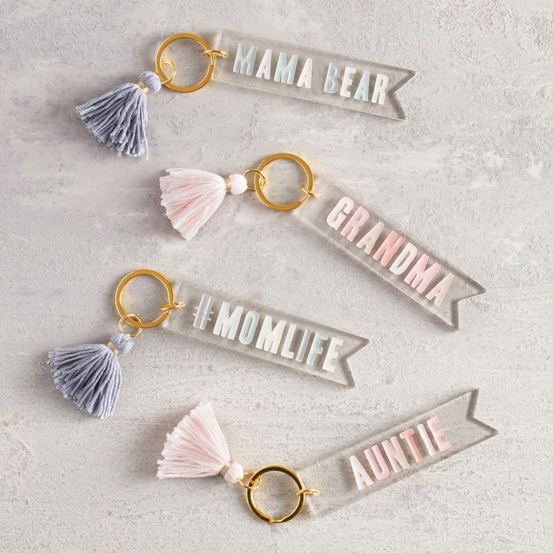 The perfect motivation as you grab your keys and head out to start your day! These stylish acrylic key tags are complete with a colorful tassel and fun phrase! A great addition to top off any gift! These are the perfect gifts for a mom-to-be, grandma-to-be, aunt-to-be, and new mom.