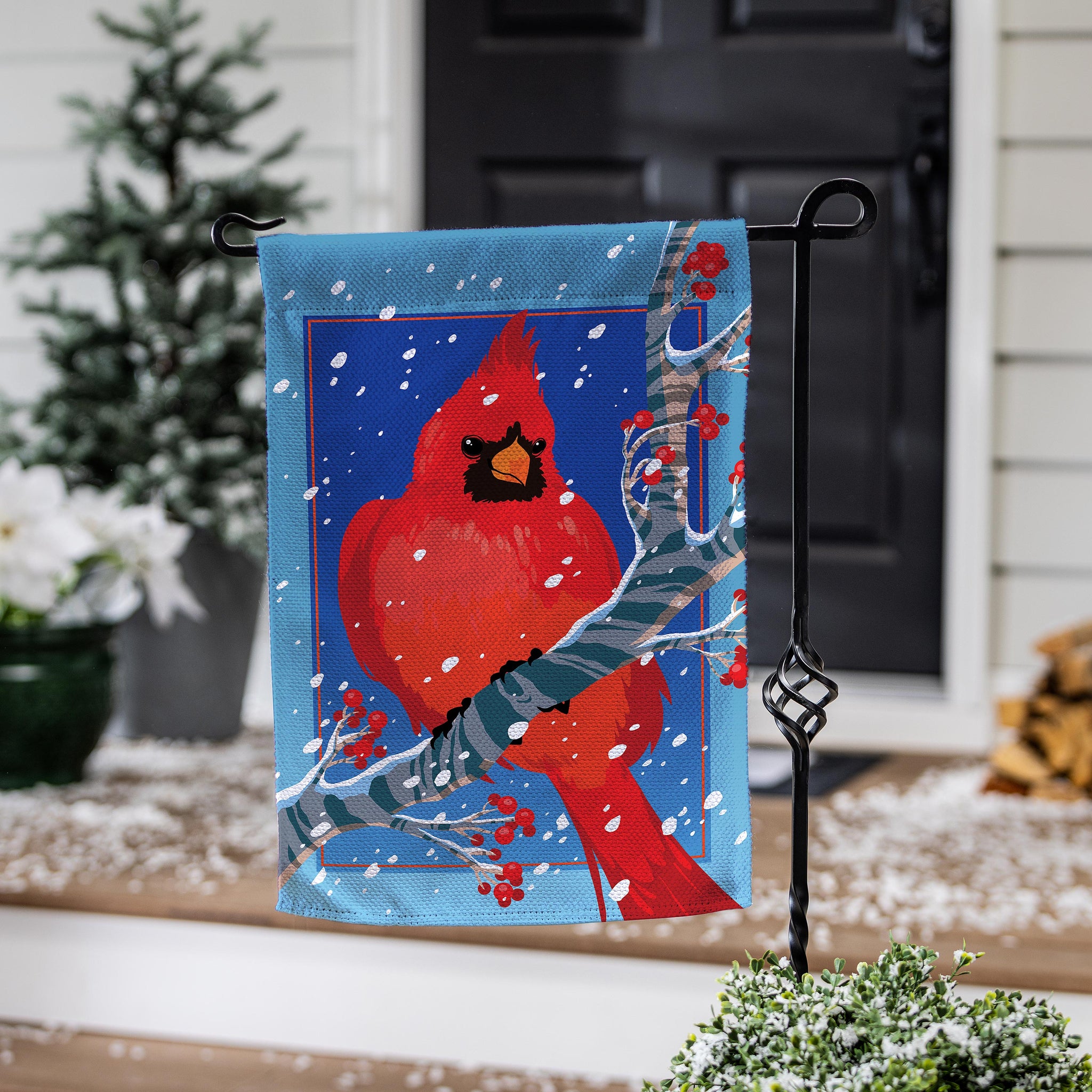 Snowy Cardinal Burlap Garden Flag
