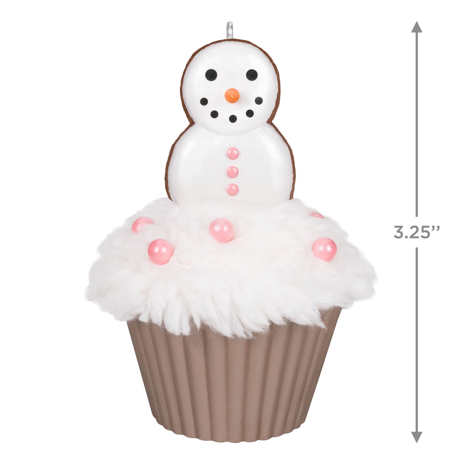 Sweeten your holiday season and tempt your taste buds with this year's addition to the Christmas Cupcakes series. This faux cupcake Christmas tree ornament features fluffy-as-meringue icing accented with shimmery pink pearl candies and a cheerful snowman made of macarons. It makes a simply scrumptious display on your holiday tree.