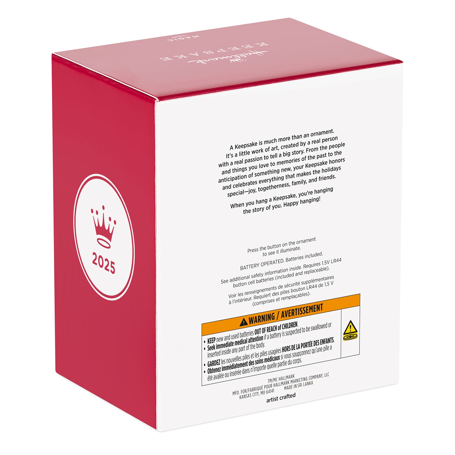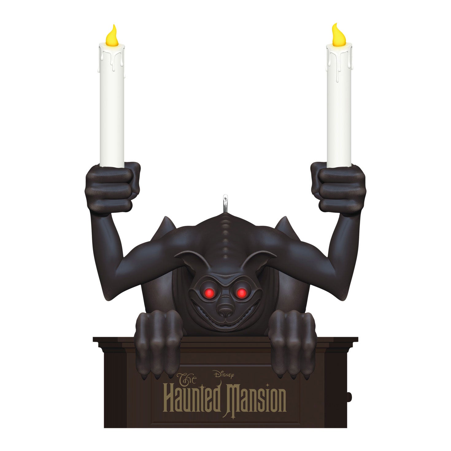 Add an aura of foreboding to your holidays with The Haunted Mansion Gargoyle Christmas tree ornament. The iconic candleholder design from the beloved Disney Parks attraction comes to life at the push of a button, as the eyes glow red and the candles flicker. Battery operated.